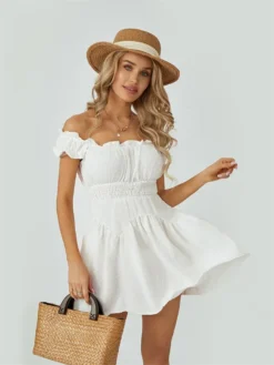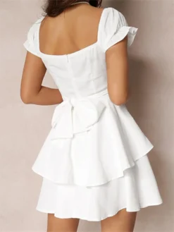 Women Summer White Dress Puff