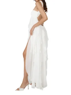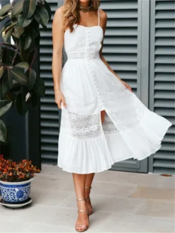 Women Lace White Dress Tie-Up Halter