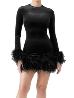 Women’s Autumn Plush Trim Short Dress