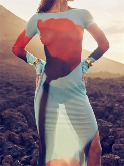 Women’s Sheer Mesh Flower Long Dress