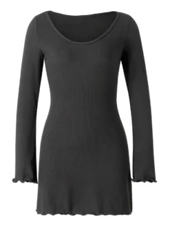Women Summer Slim A-Line Dress, Solid Color Ribbed Long Sleeve V-Neck Slim Fit Mini Dress for Party, Beach